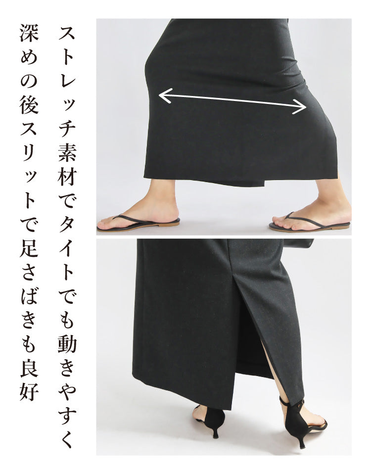 さらにストレッチ素材で動きやすく、後ろに深めのスリットを入れることで足さばきも良好です。