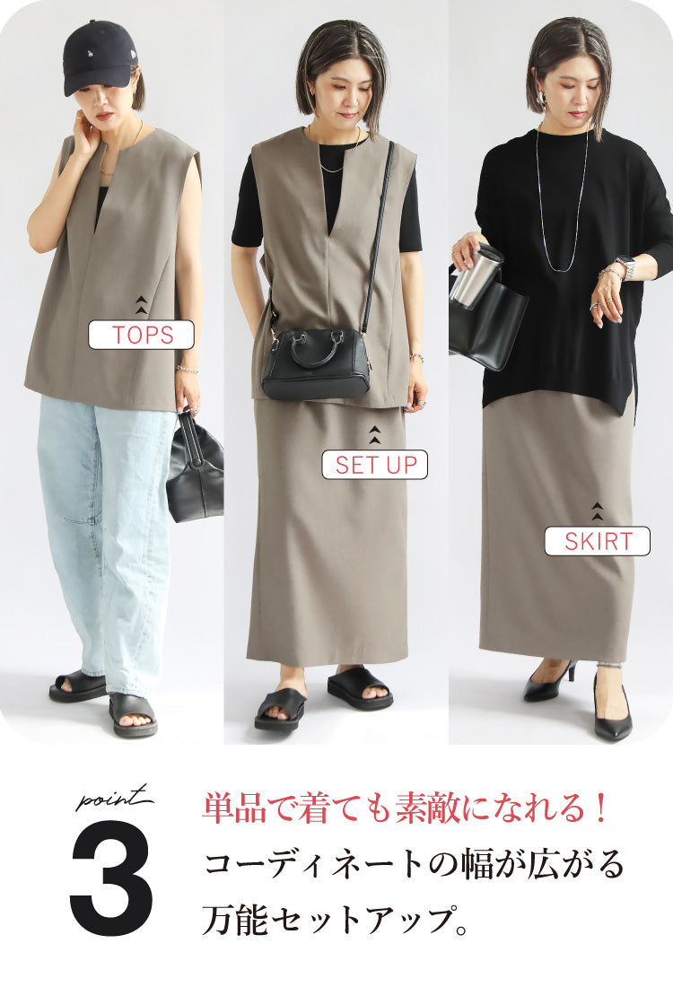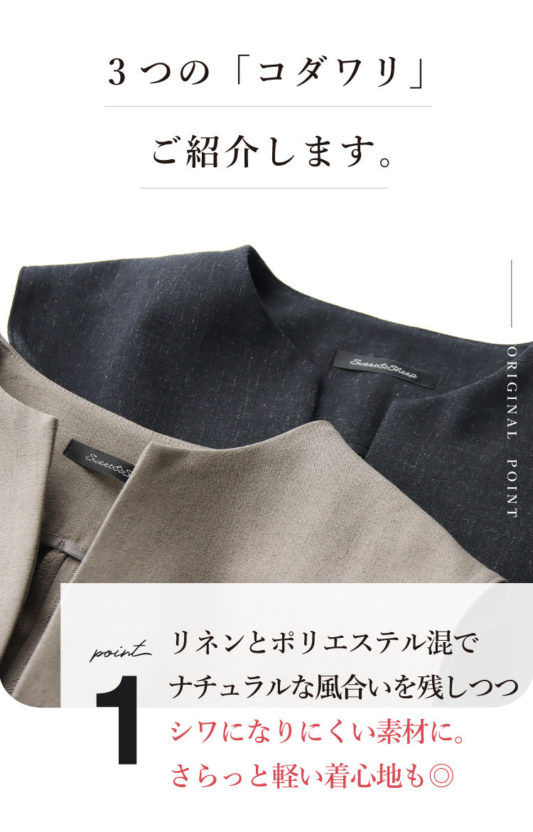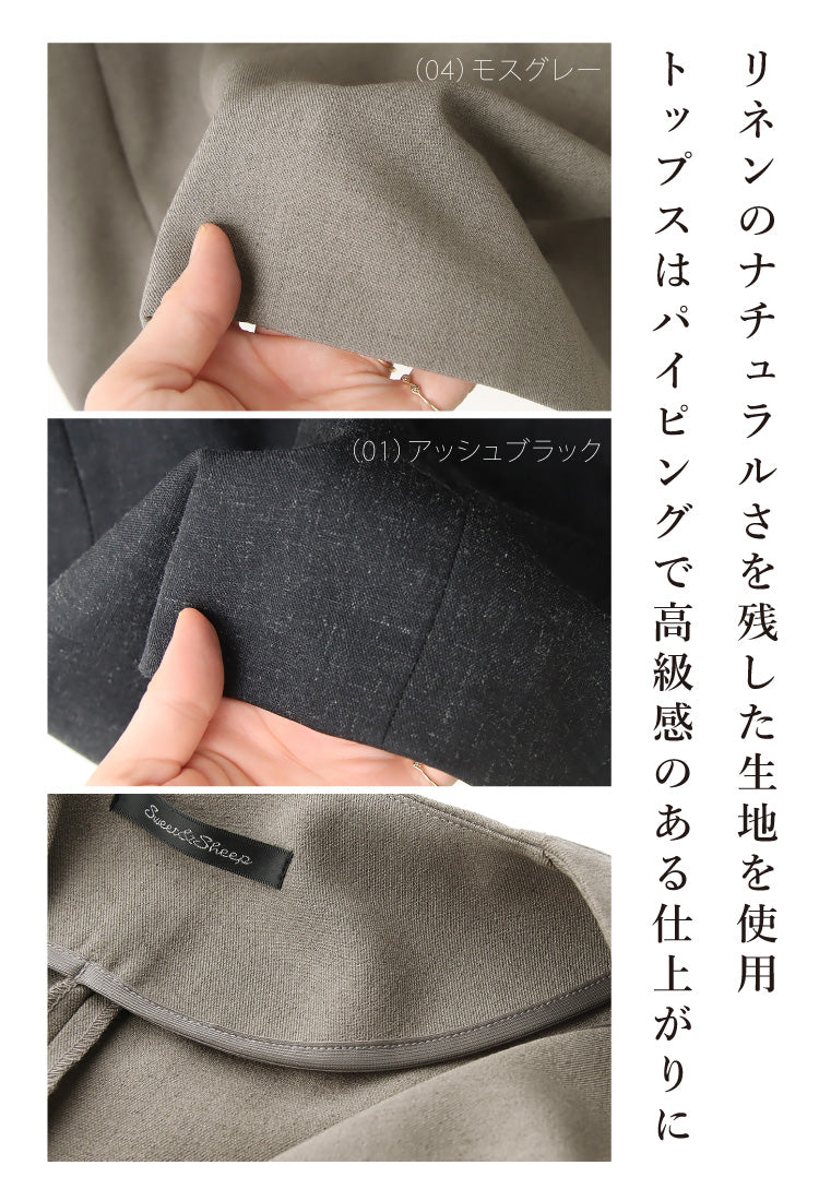 リネンのナチュラルさを生かした素材で、デイリーにもきちんとした場にも活躍するセットアップです。
