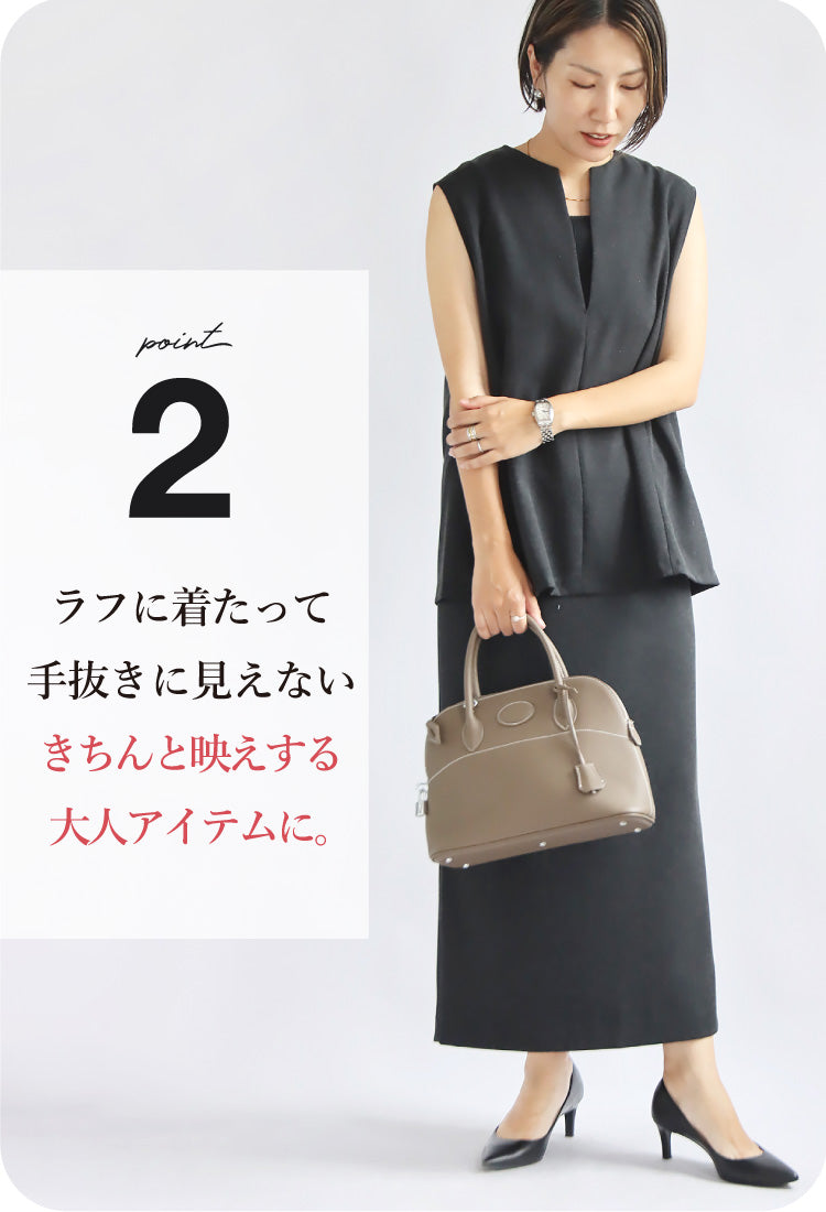 ラフな着こなしでもきちんと感を演出し、単品使いでも素敵に決まる万能アイテムです。
