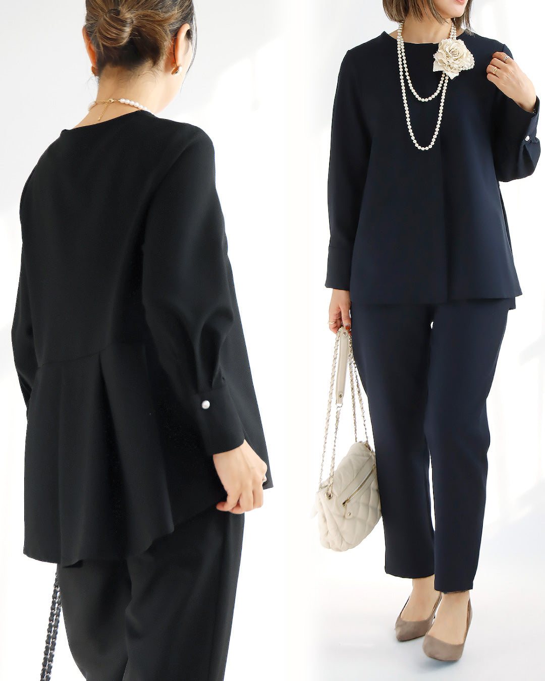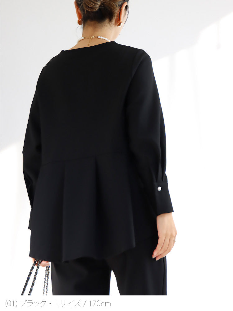 □後ろはペプラムデザインでお尻周りの体型をカバー