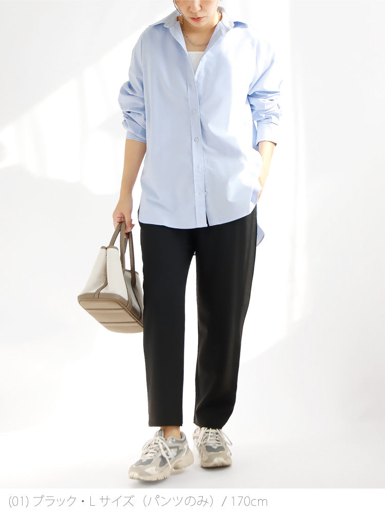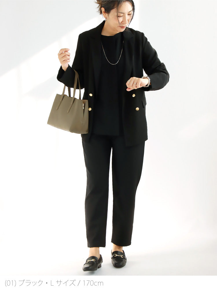 何本でも持っていたい黒パンツはどんなコーデにもしっくりくる!カジュアルコーデも上品に仕上がります。