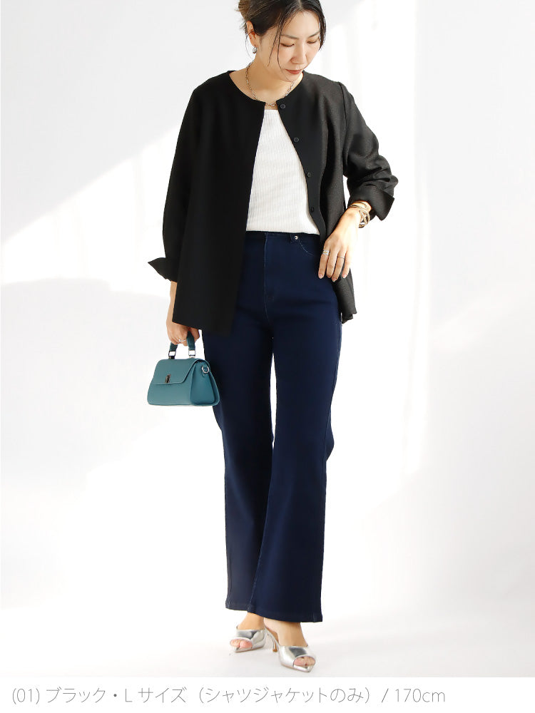 トップスの前を開ければシャツジャケットとして活躍!どんなボトムスとも合わせやすいデザインです。