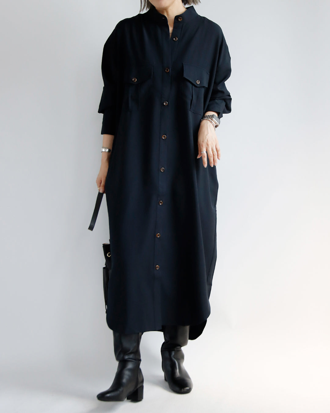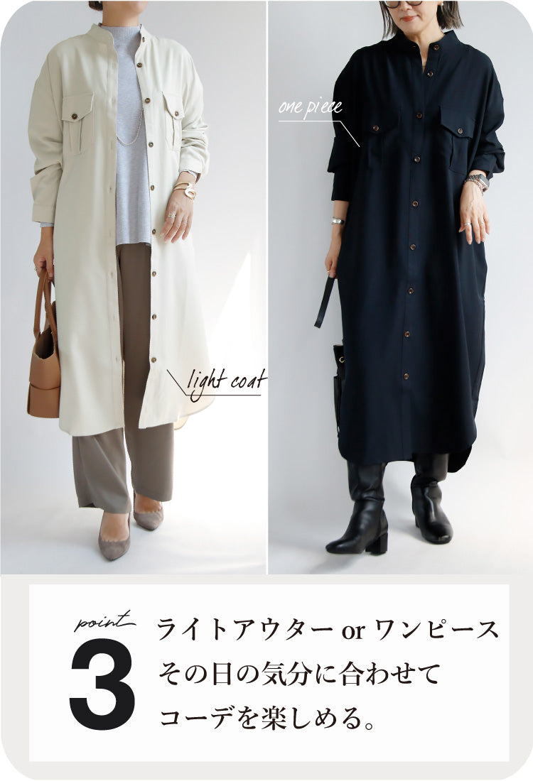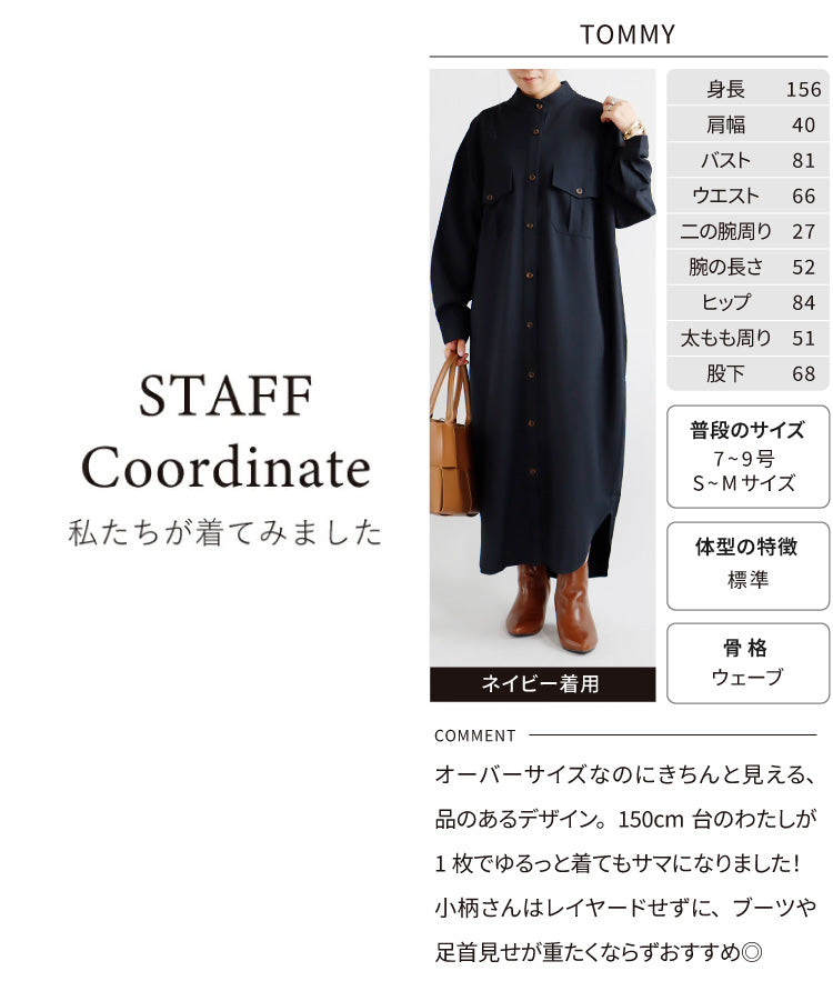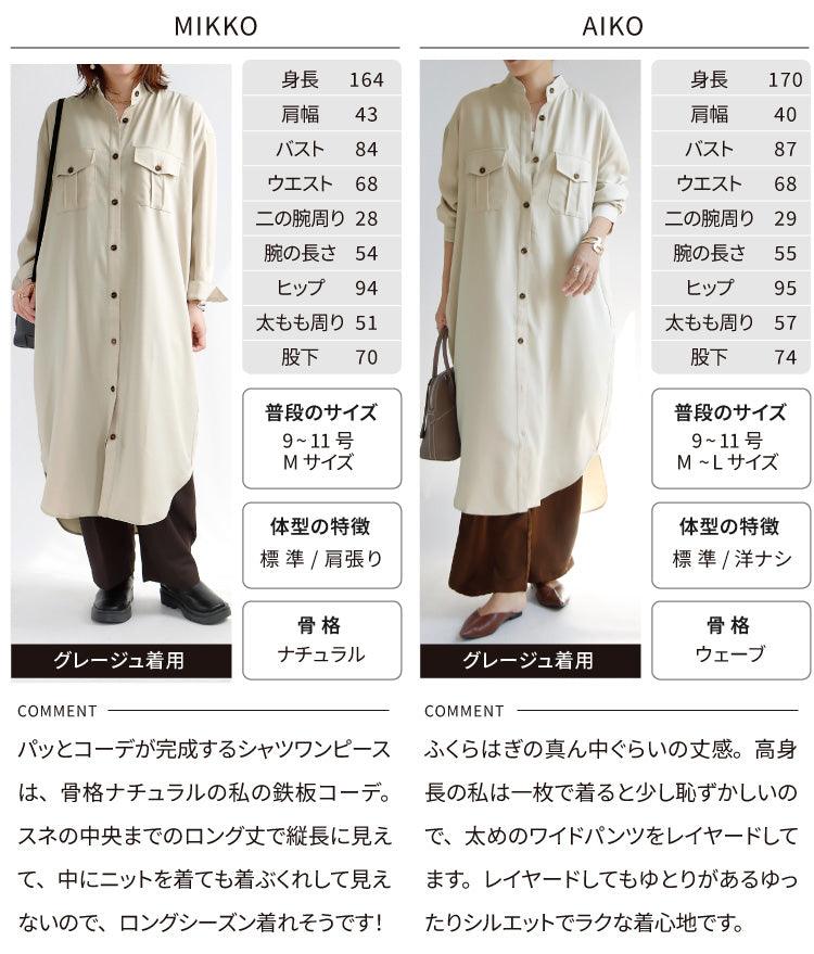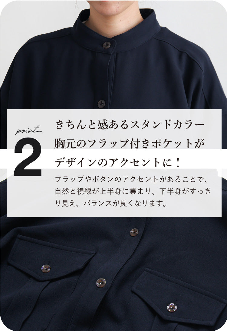 フラップやボタンのアクセントがあることで、自然と視線が上半身に集まり、下半身がすっきり見え、バランスが良くなります。