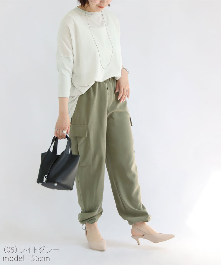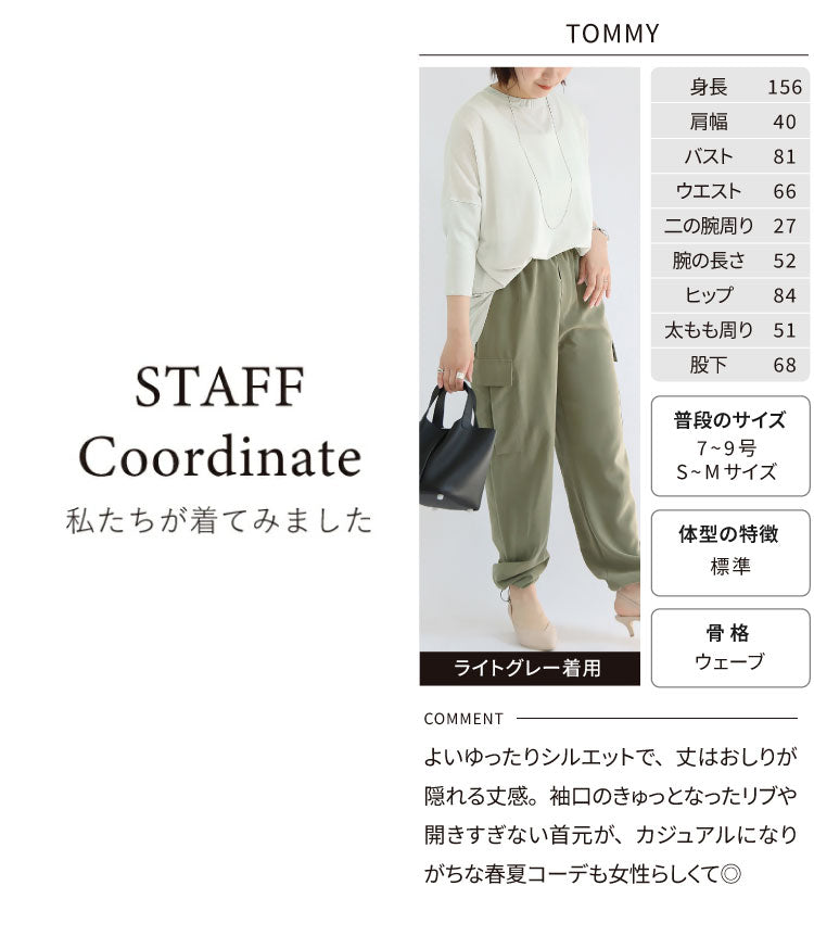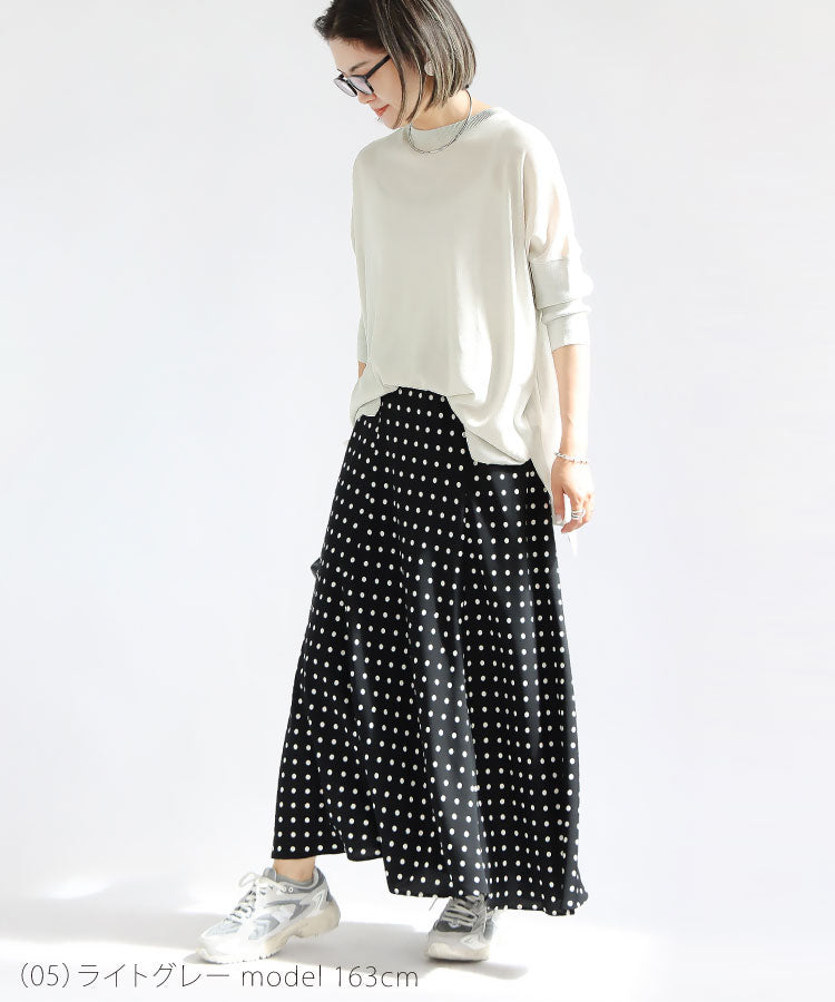 無彩色のグレートップスは様々な色、アイテムともマッチする着回し力が高いカラーです。