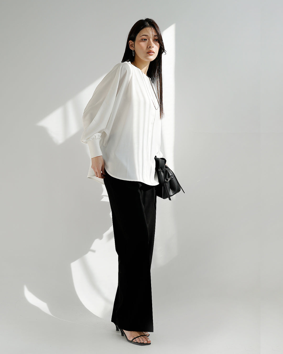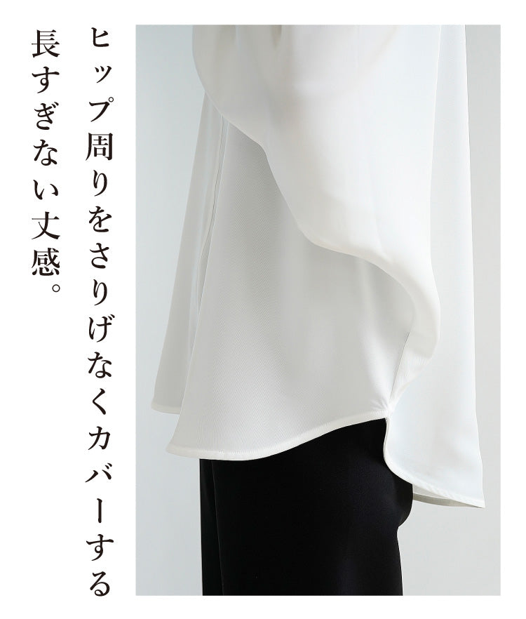 ヒップ周りをさりげなくカバーする長すぎない丈感で、デイリーから仕事まで幅広く活躍する万能ブラウスです。