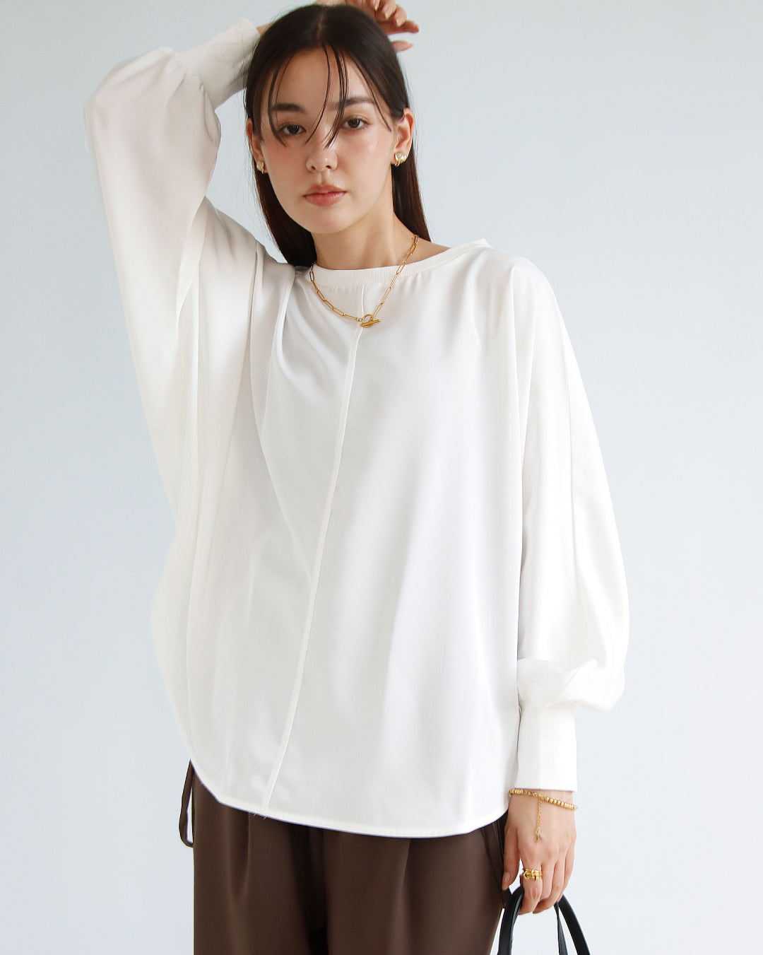 こなれ感漂う大人のドルマンブラウス