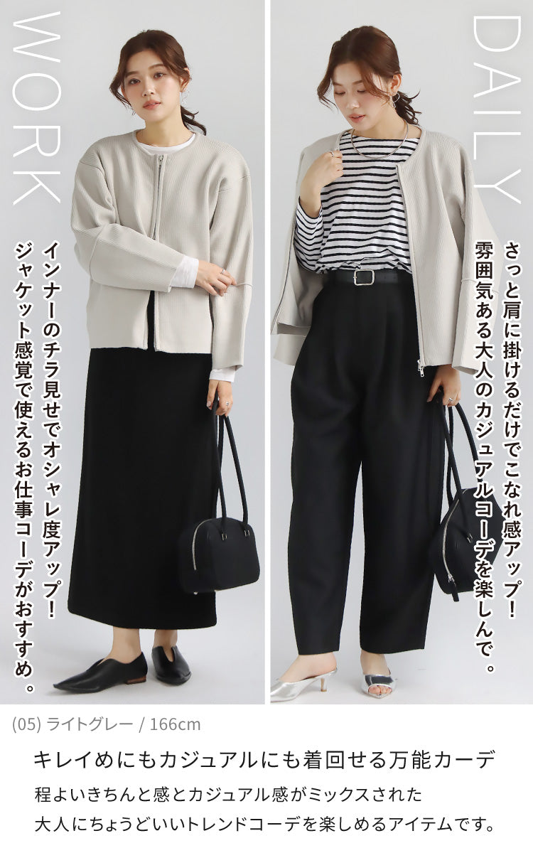 ジャケット感覚で使えるお仕事コーデがおすすめ。