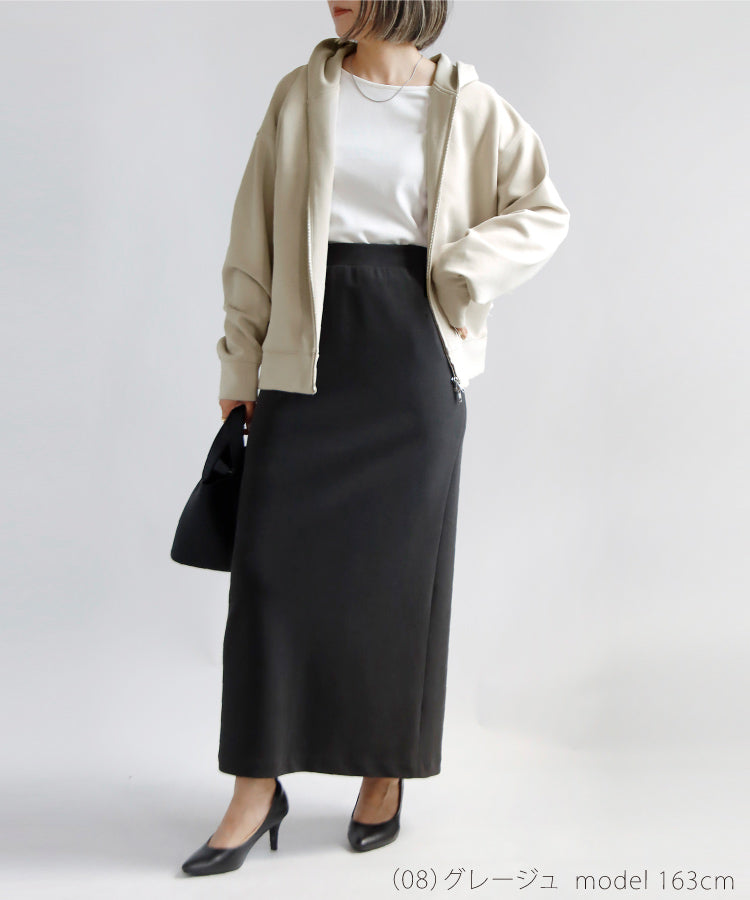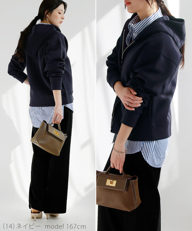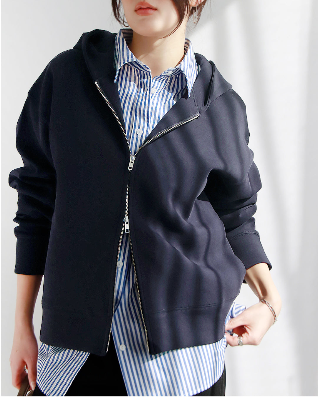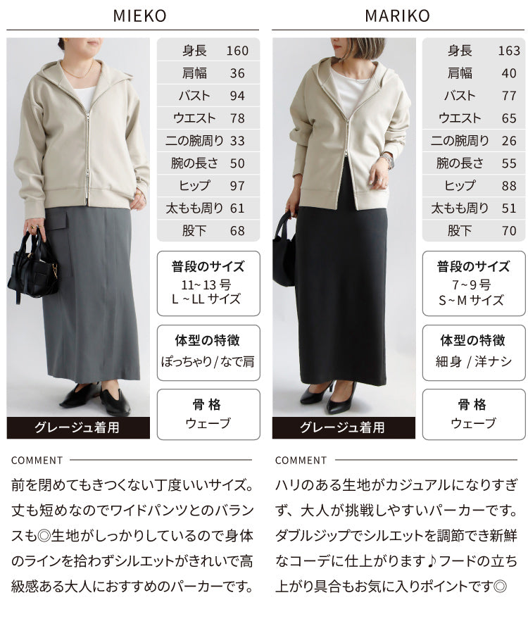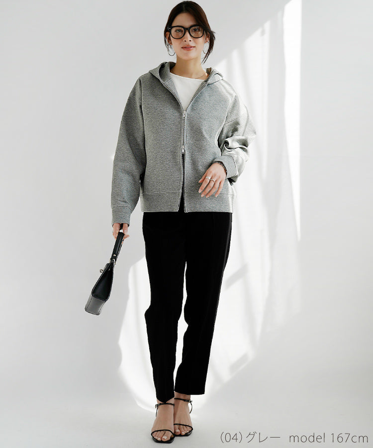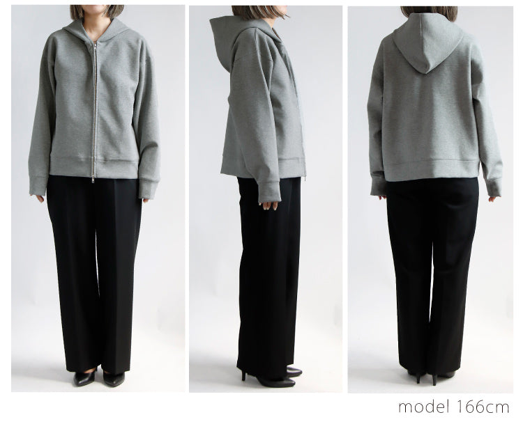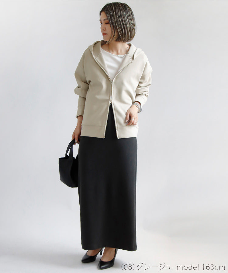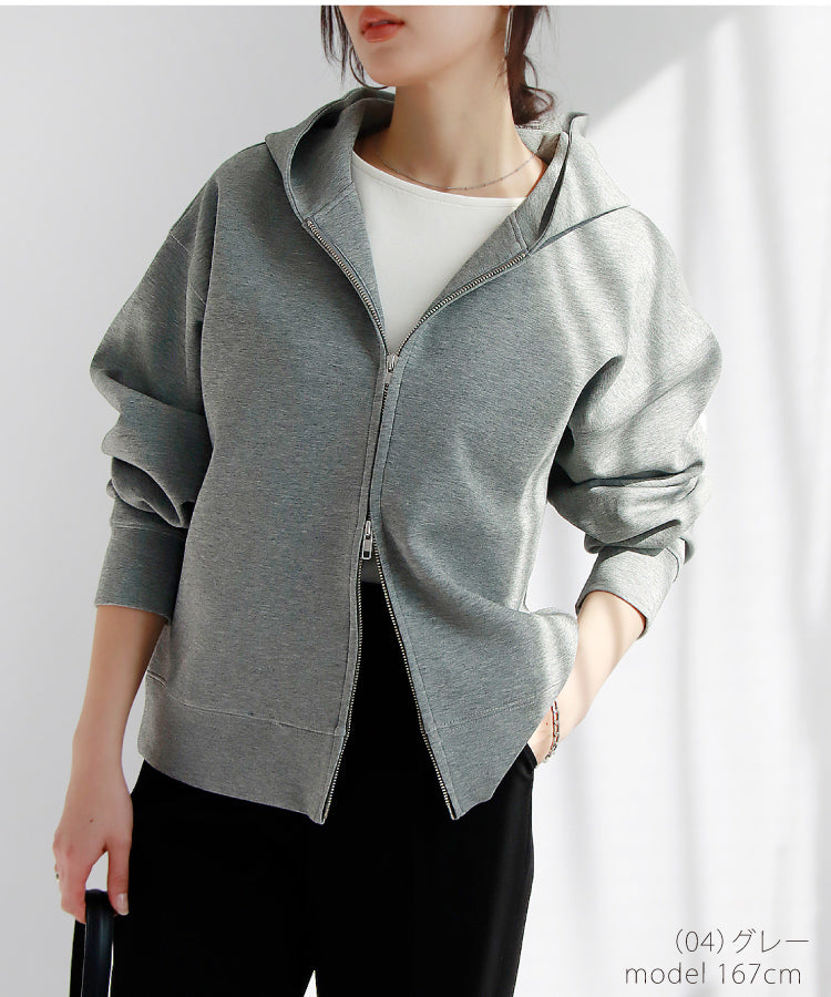 ジップの開き具合が調整でき、ゆるっとしたシルエットなので、シャツなどのレイヤードが楽しめます。