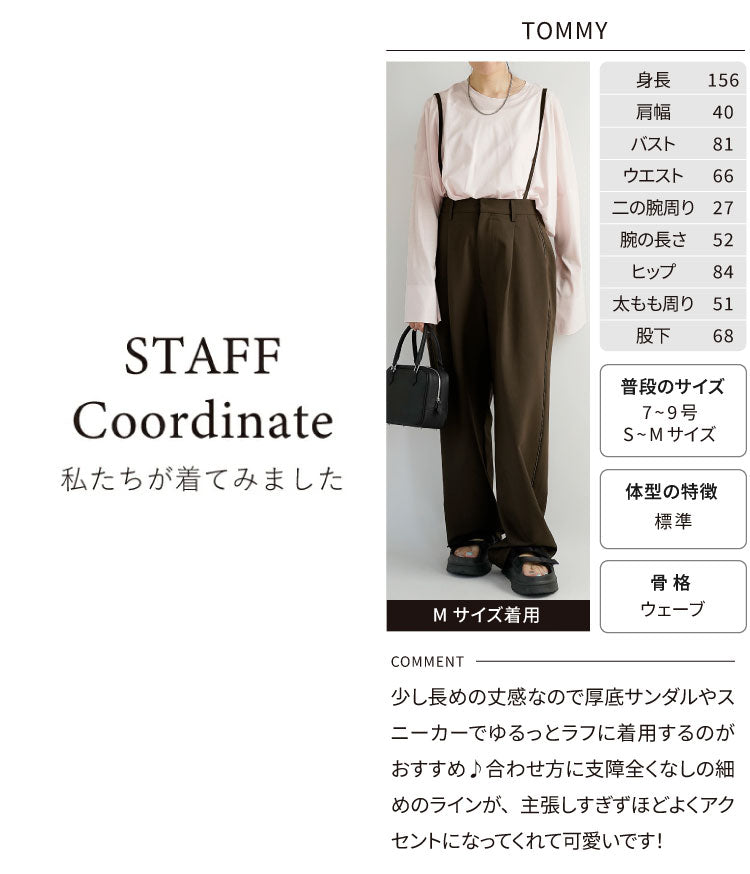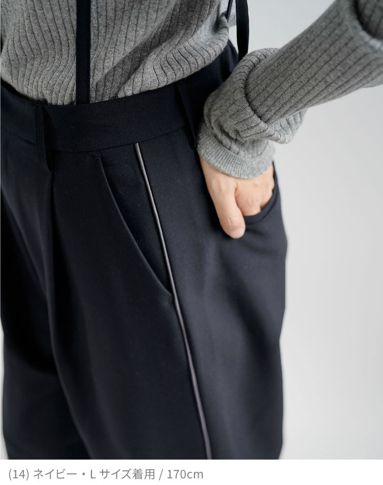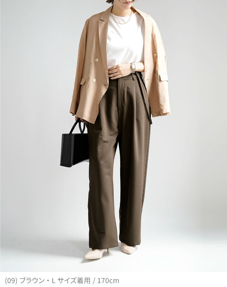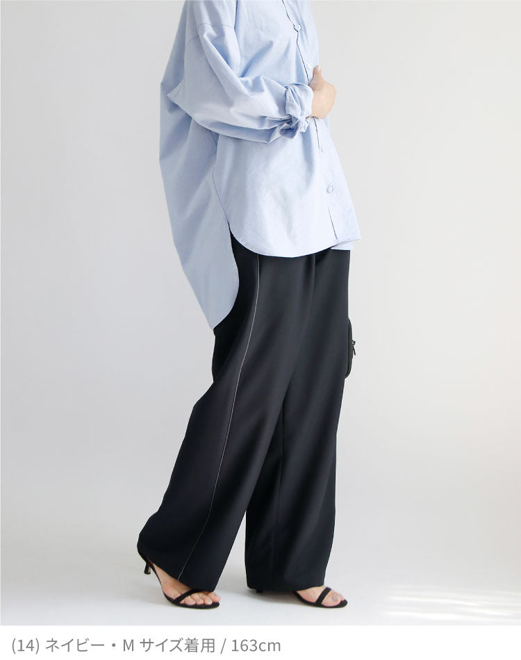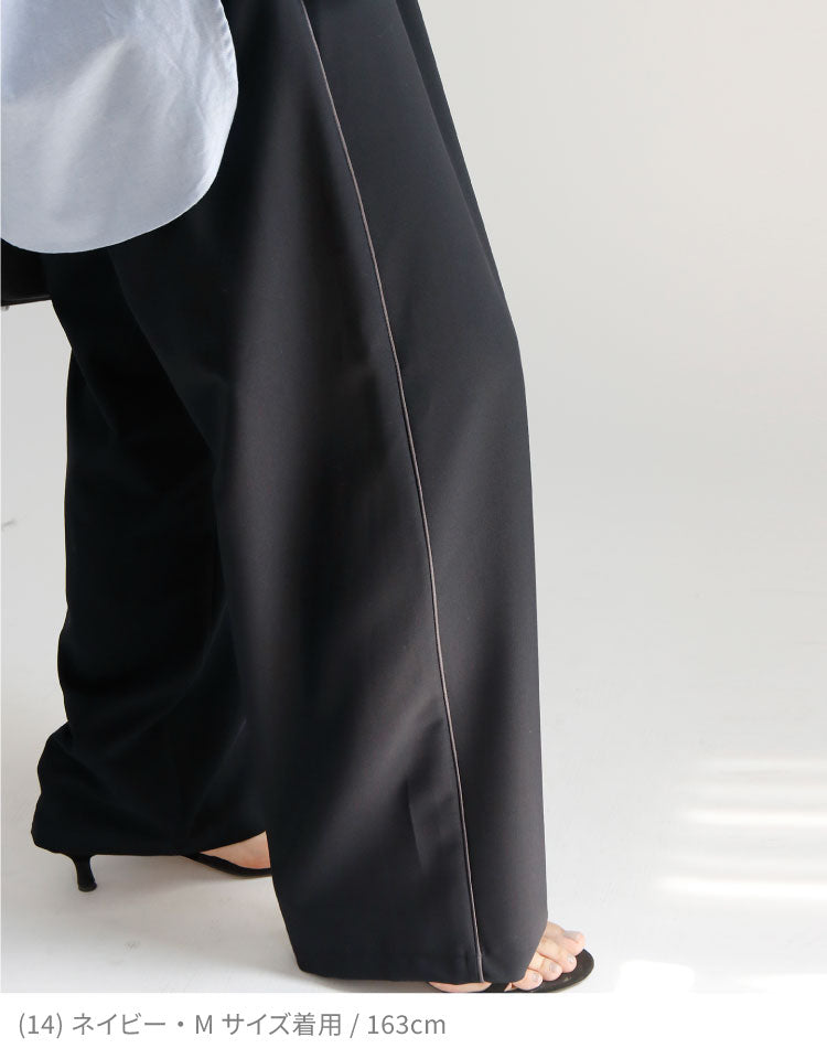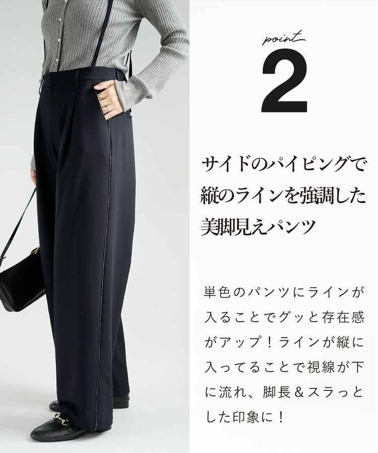 ラインが縦に入ってることで視線が下に流れ、脚長&スラっとした印象に!