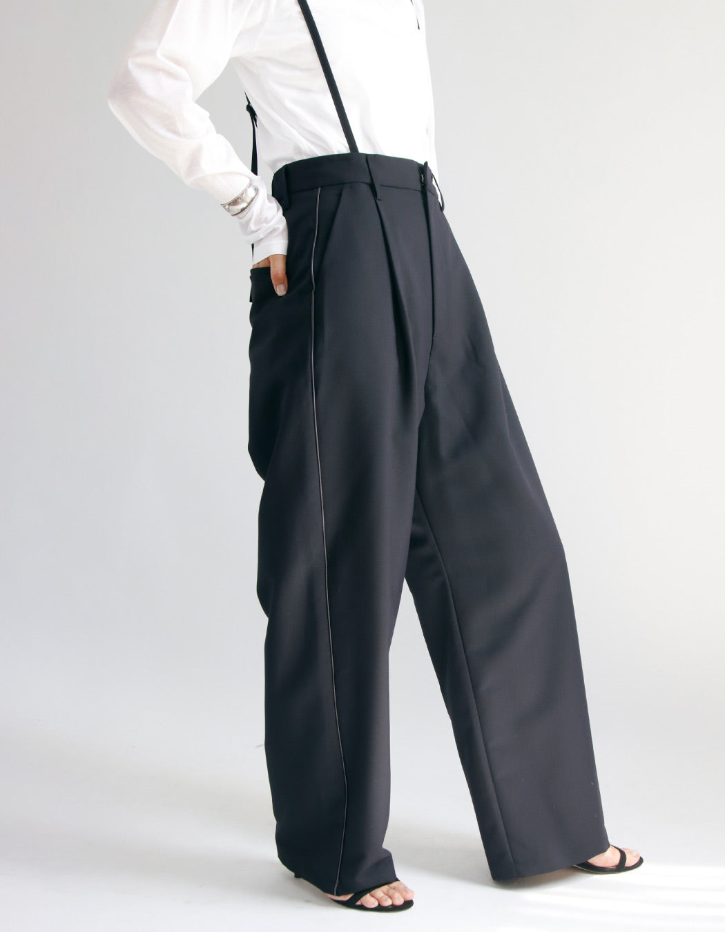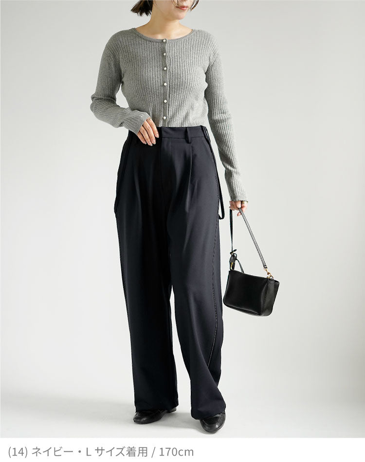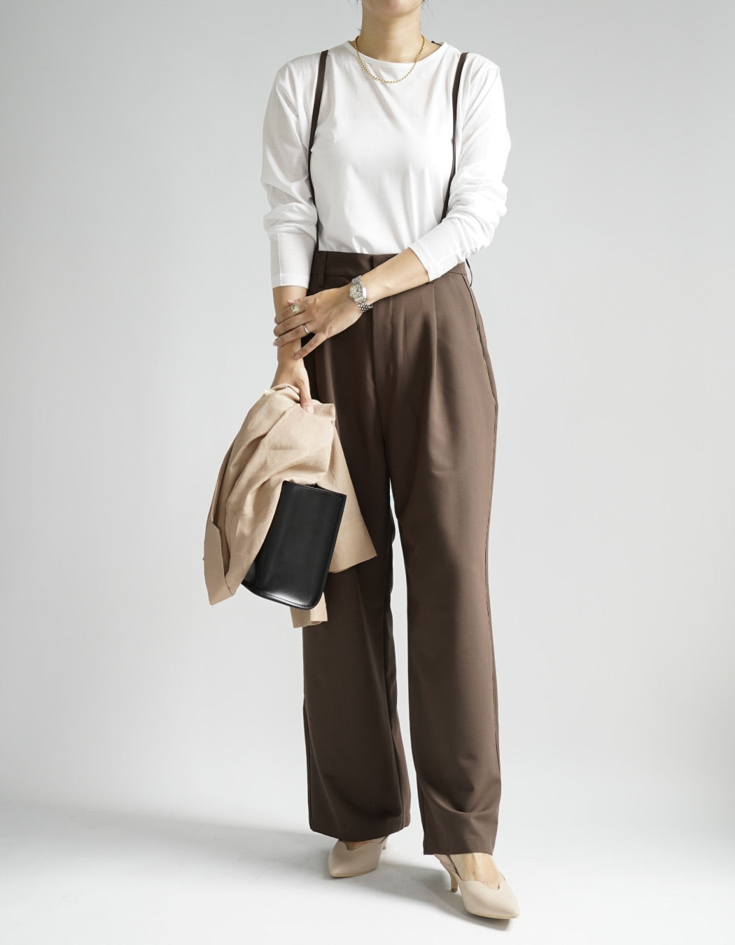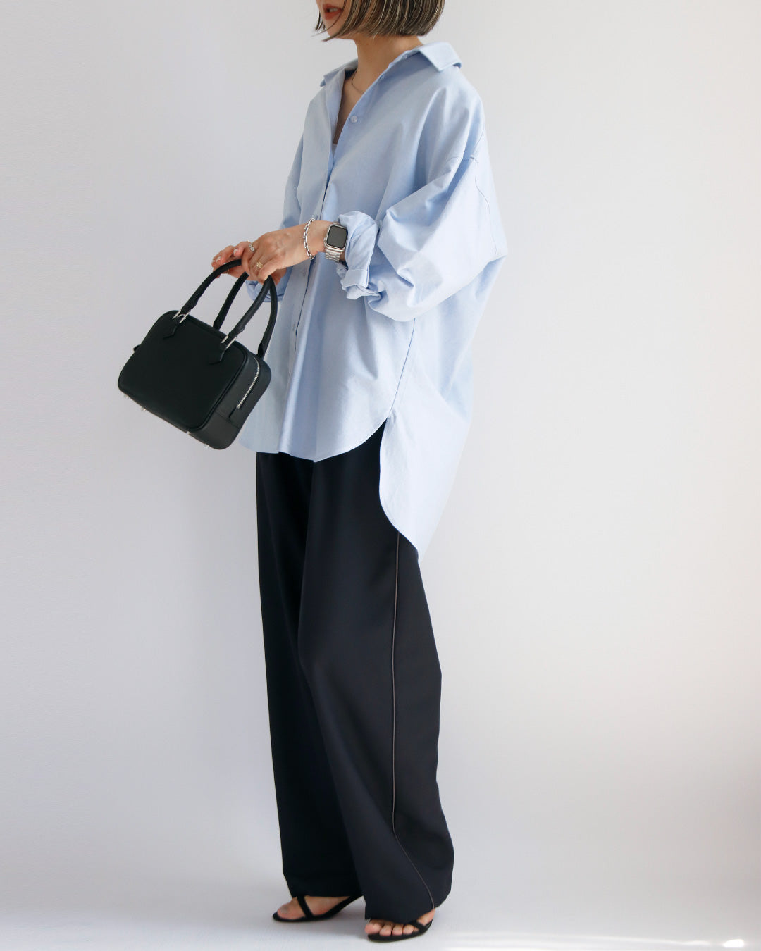 ラインが縦に入ってることで視線が下に流れ、脚長&スラっとした印象に!