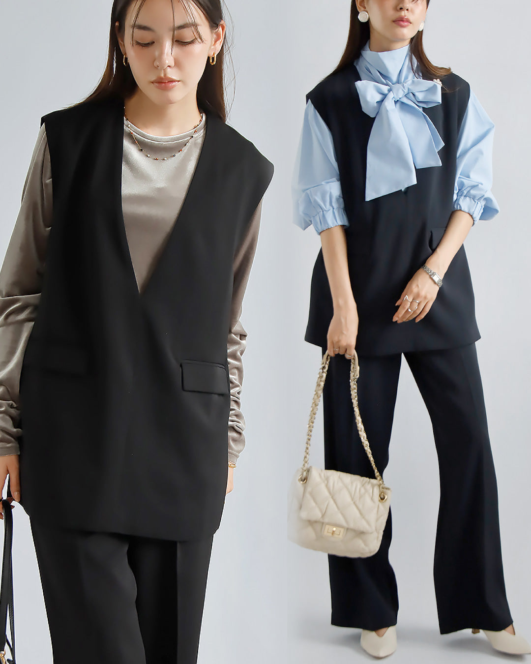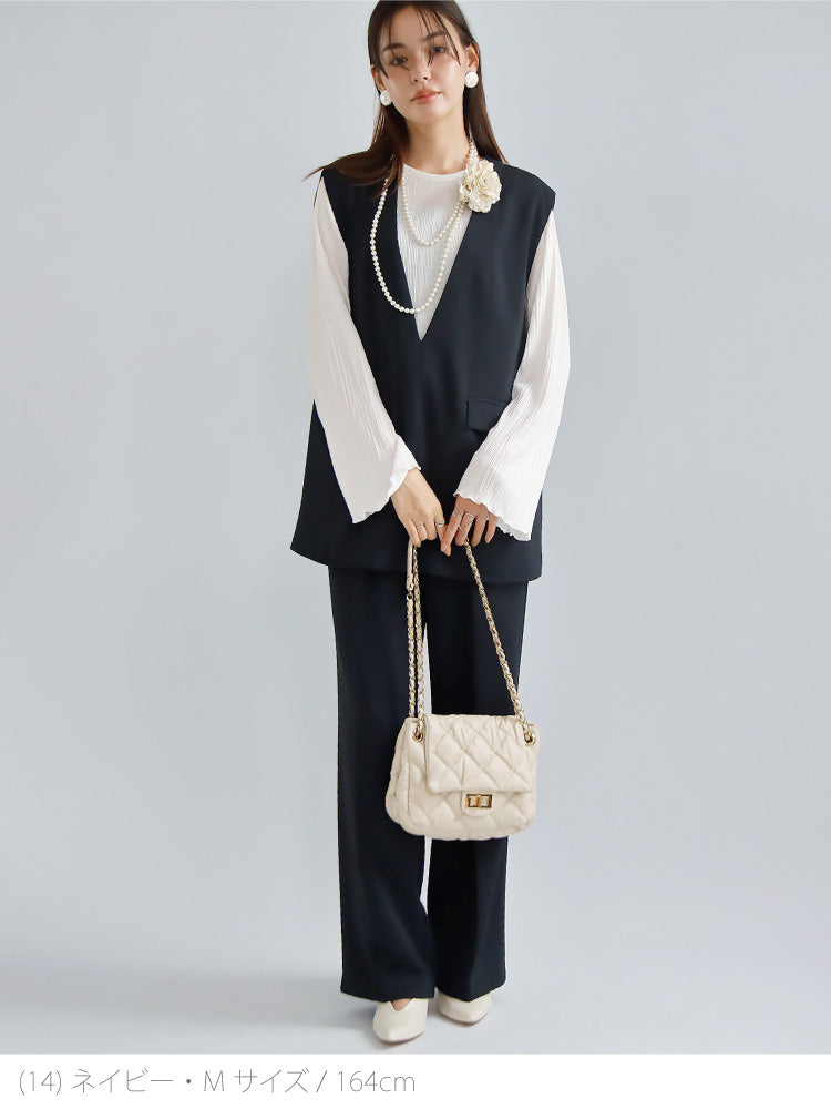 Vネックベスト×パンツセットアップ