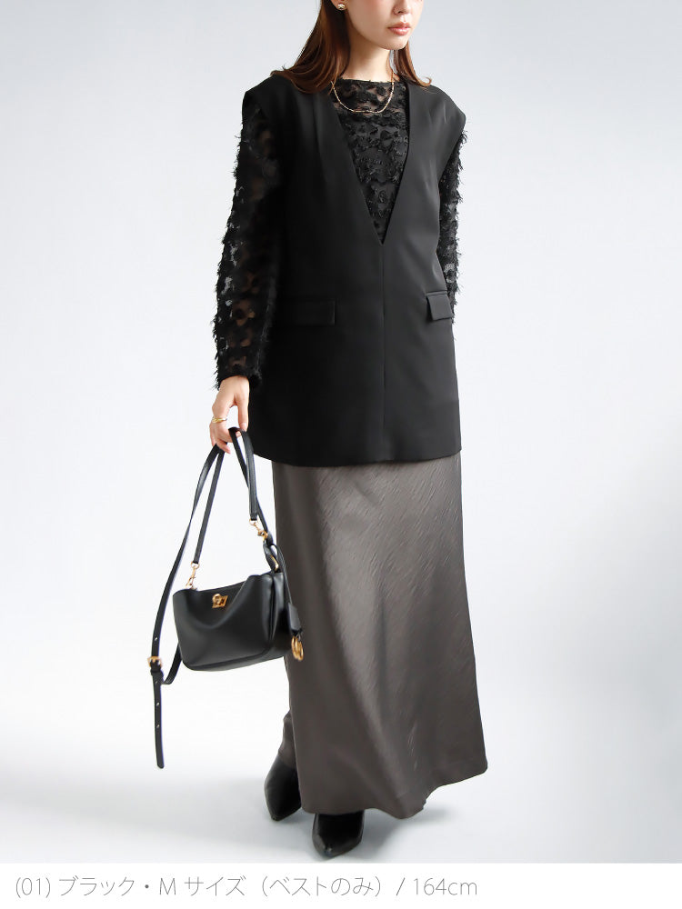 ベストは裏地付きで型崩れしにくく