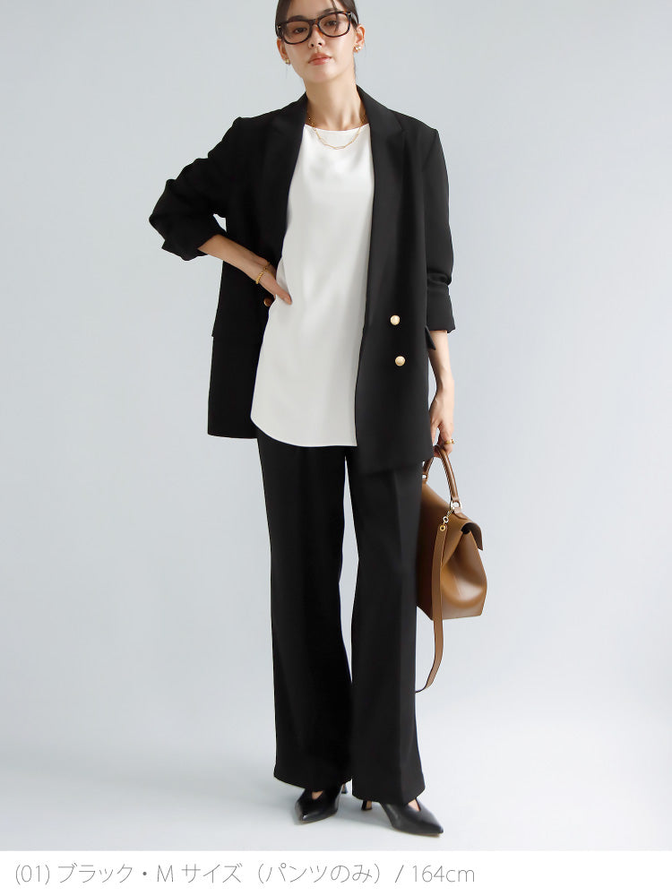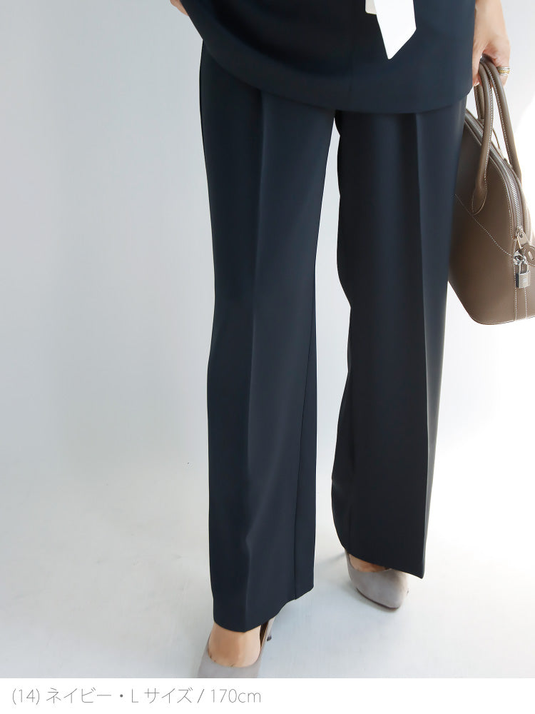 美脚ラインにこだわったワイドストレートパンツ。お仕事にもぴったりなきれいめで穿き心地楽ちんパンツ。