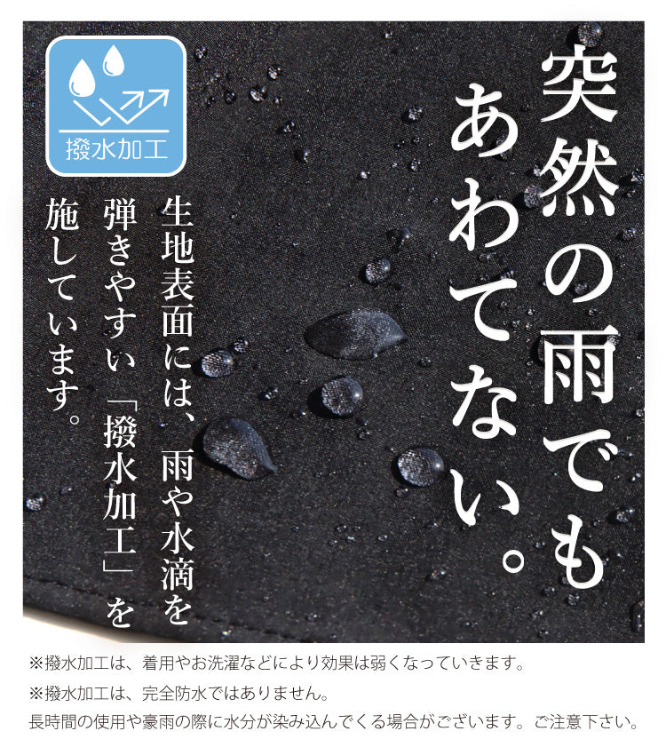 ※撥水加工は、着用やお洗濯などにより効果は弱くなっていきます。
