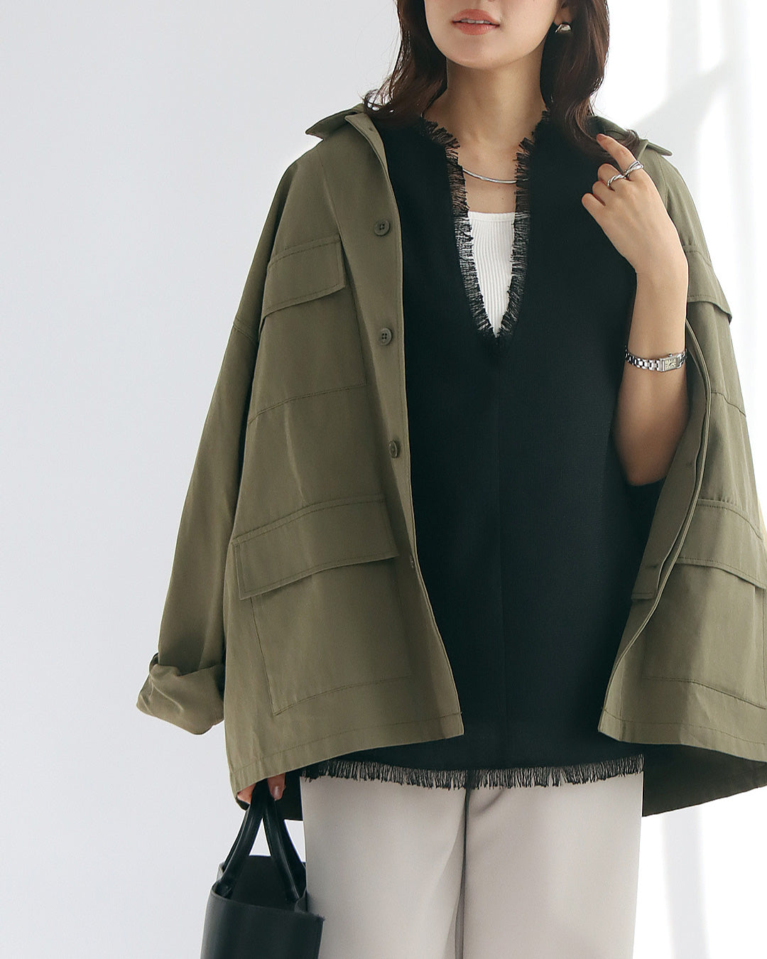 少し起毛かかった独特な風合いやステッチがヴィンテージなニュアンスを添える、大人のミリタリージャケット。