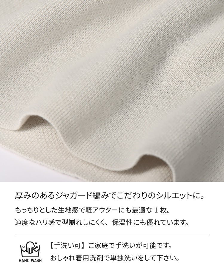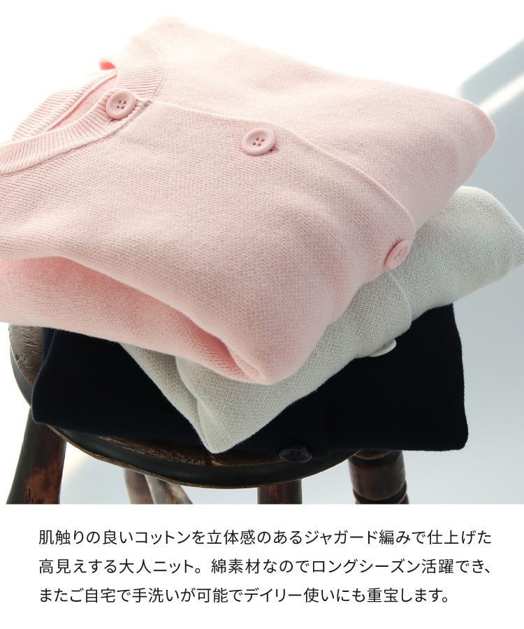 肌触りの良いコットンを立体感のあるジャガード編みで仕上げた高見えする大人ニット。