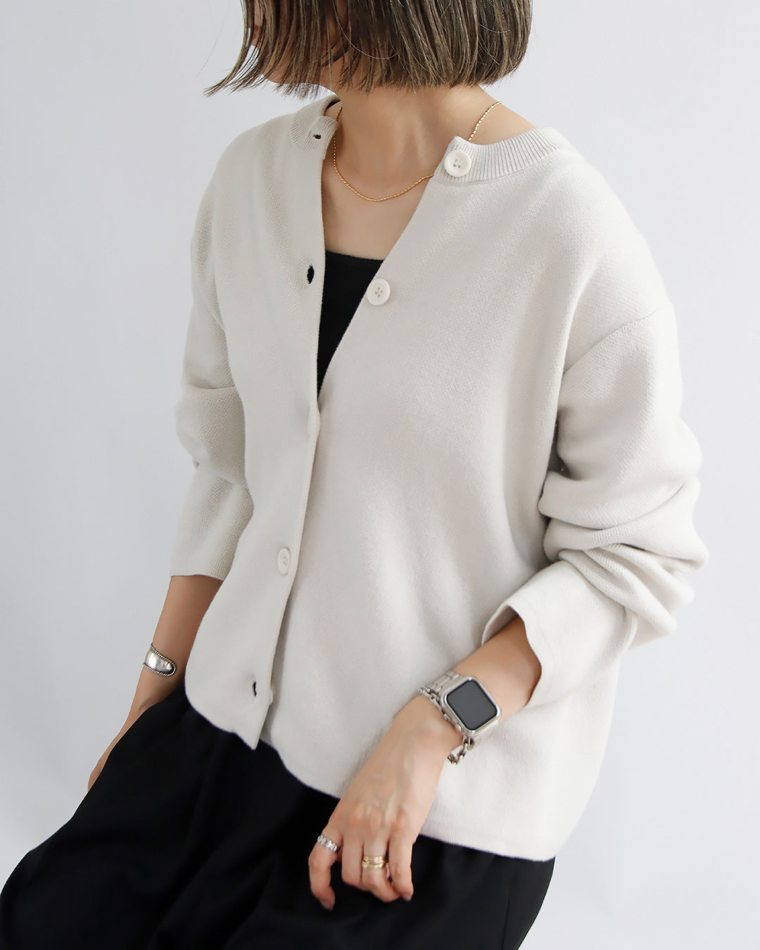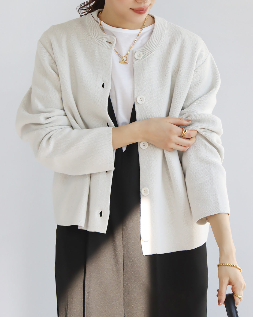 もっちりとした生地感で軽アウターにも最適な1枚。