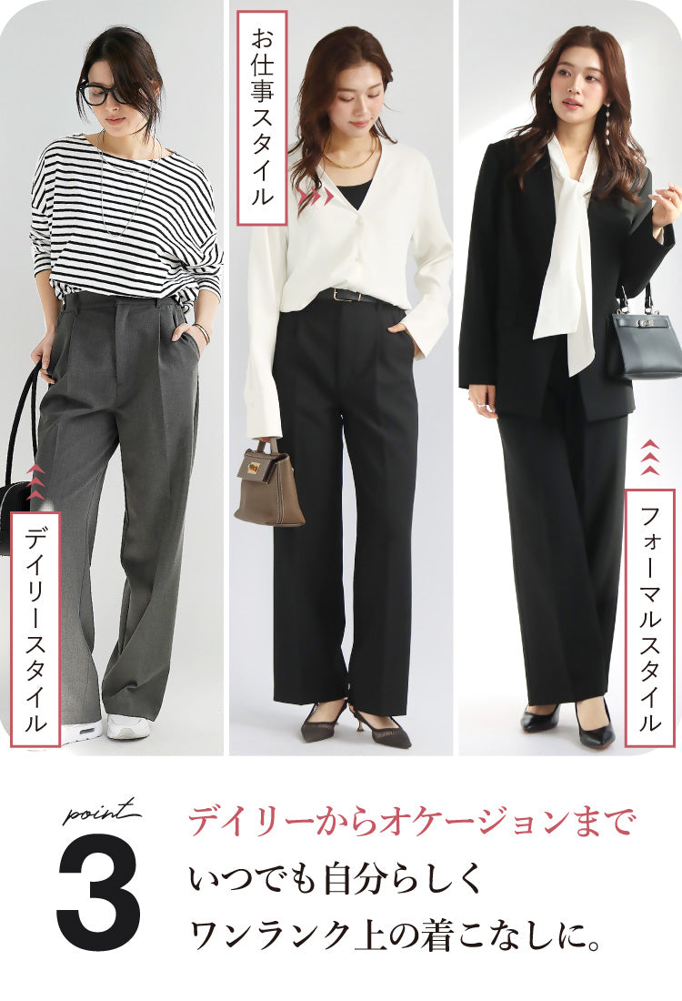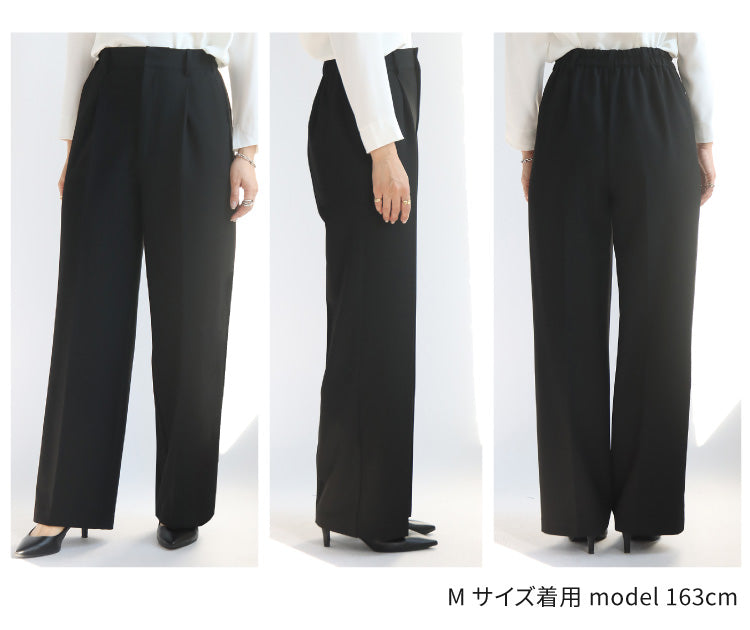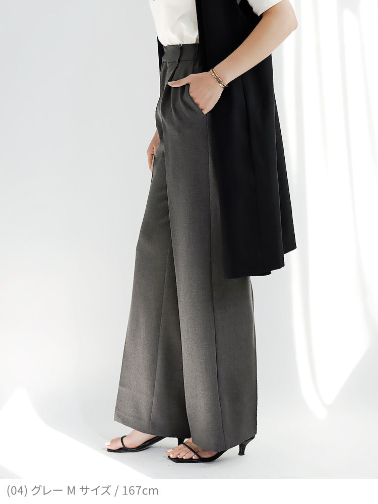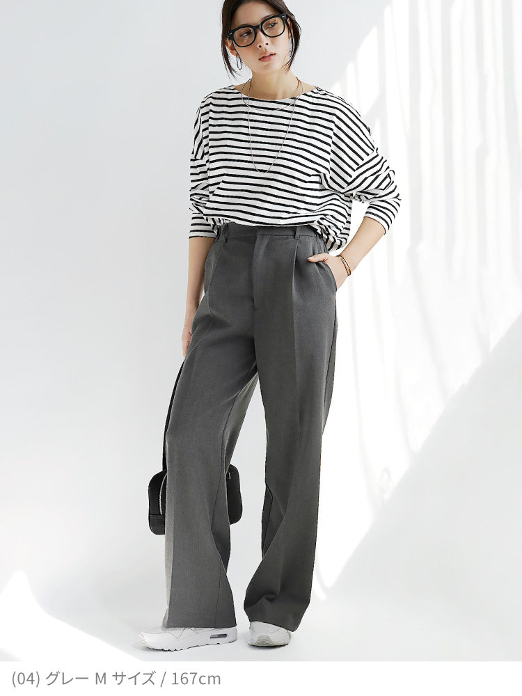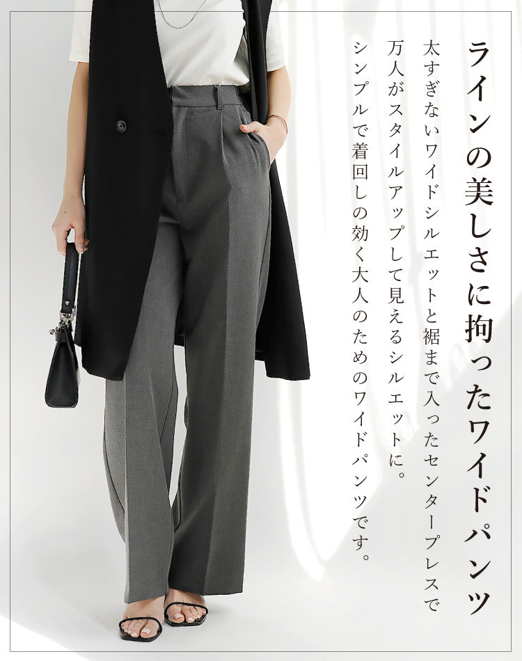 シンプルで着回しの効く大人のためのワイドパンツです。