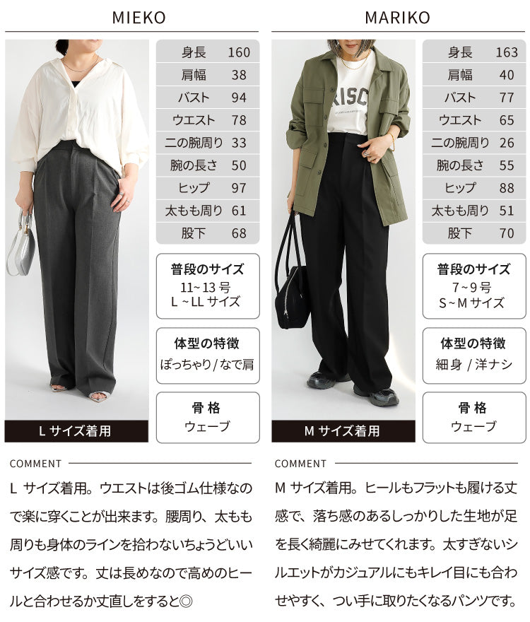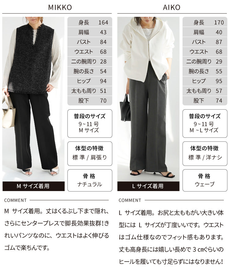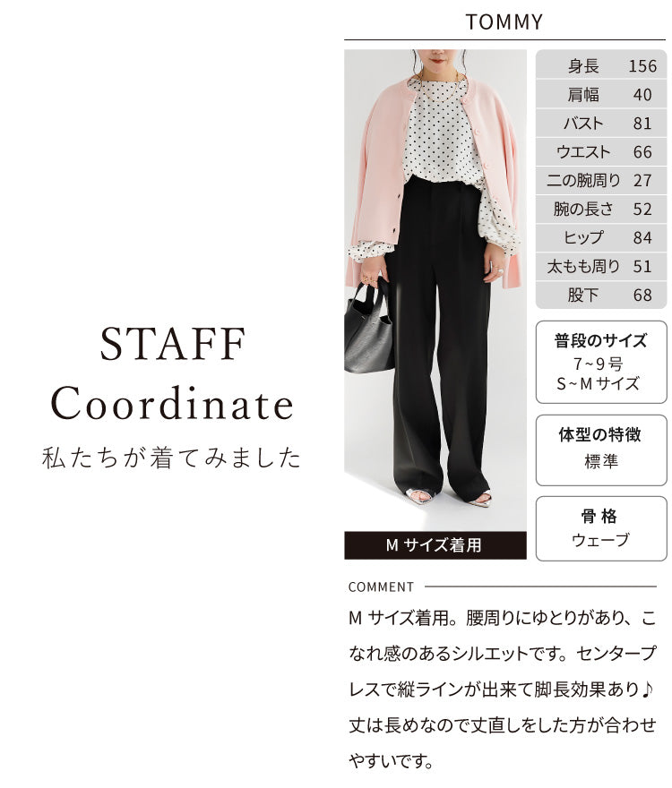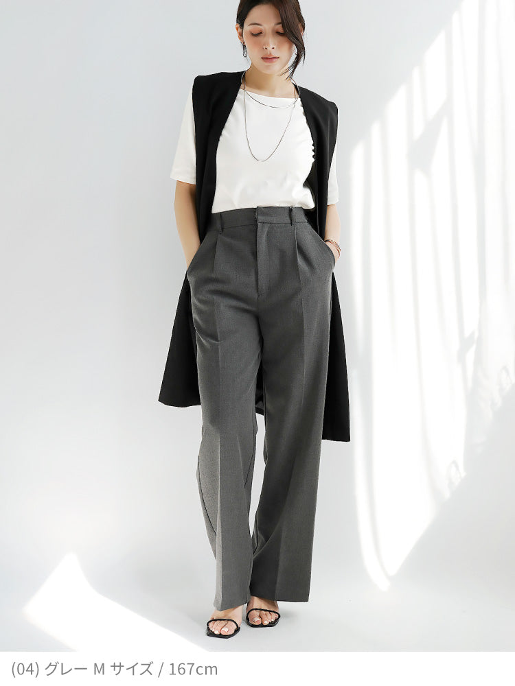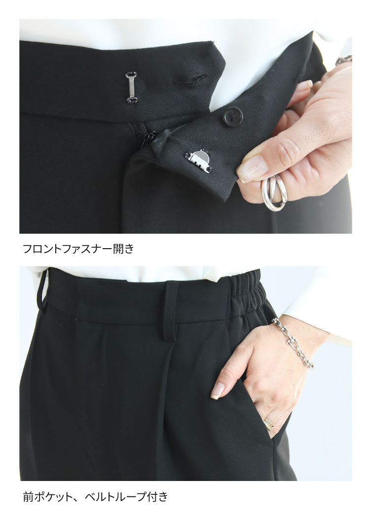 シンプルで着回しの効く大人のためのワイドパンツです。