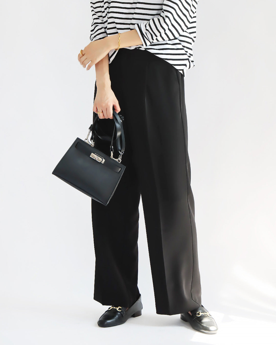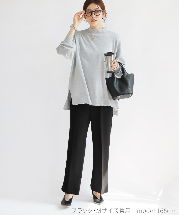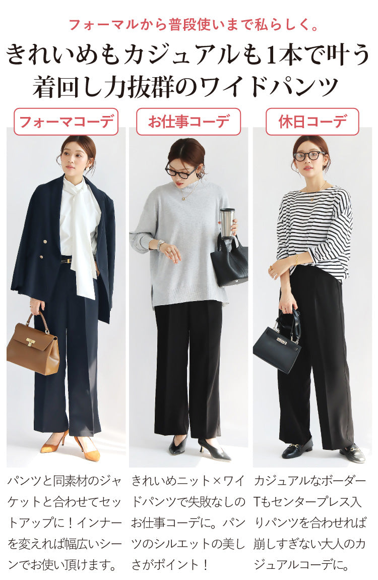 きれいめニット×ワイドパンツで失敗なしのお仕事コーデに。パンツのシルエットの美しさがポイント!